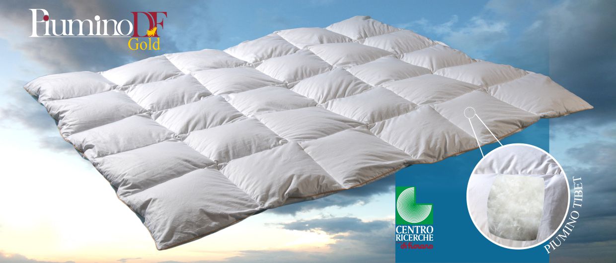 Le qualità igroscopiche, traspiranti e termoregolabili garantite dall'uso del piumino Tibet si coniugano alla grande leggerezza e comodità; la raffinata lavorazione con trapuntatura a quadri fissi permette una ottimale distribuzione dell'imbottitura e impedisce che la stessa si sposti, creando fastidiosi accumuli e zone vuote.